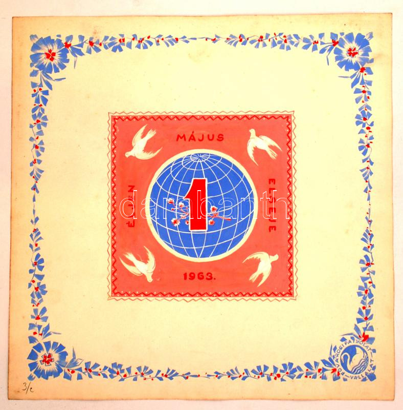 Wild Károly (?-?): Éljen május elseje!, plakátterv, vegyes technika, ... https://www.darabanth.com/de/267-Fernauktion/267.0/Andere-Sammelgebiete/Gemalde-und-Grafiken~1/Wild-Karoly--Eljen-majus-elseje-plakatterv-vegyes-technika--papir-42x42cm~II1339695