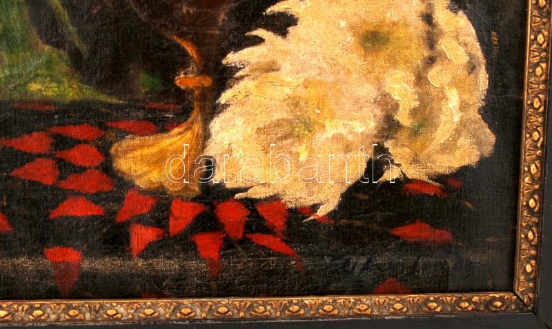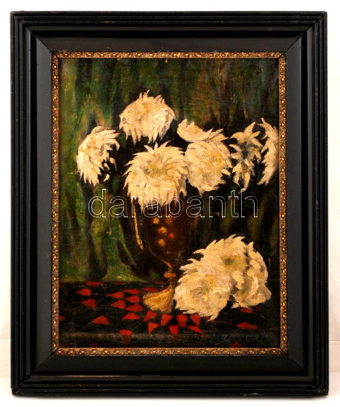 Beschreibung: Ziffer jelzéssel: Virágcsendélet. Olaj, vászon, sérült keretben, 40×30 cm
