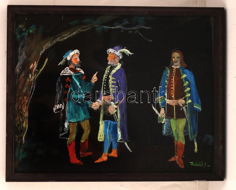 Zórád jelzéssel: Figyelmeztető kézfogás. Vegyes technika, papír, üvege... https://www.darabanth.com/de/267-Fernauktion/267.0/Andere-Sammelgebiete/Gemalde-und-Grafiken~1/Zorad-jelzessel-Figyelmezteto-kezfogas-Vegyes-technika-papir-uvegezett-keretben-37C39746-~II1339909