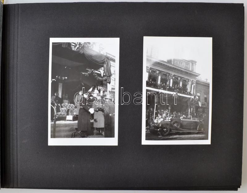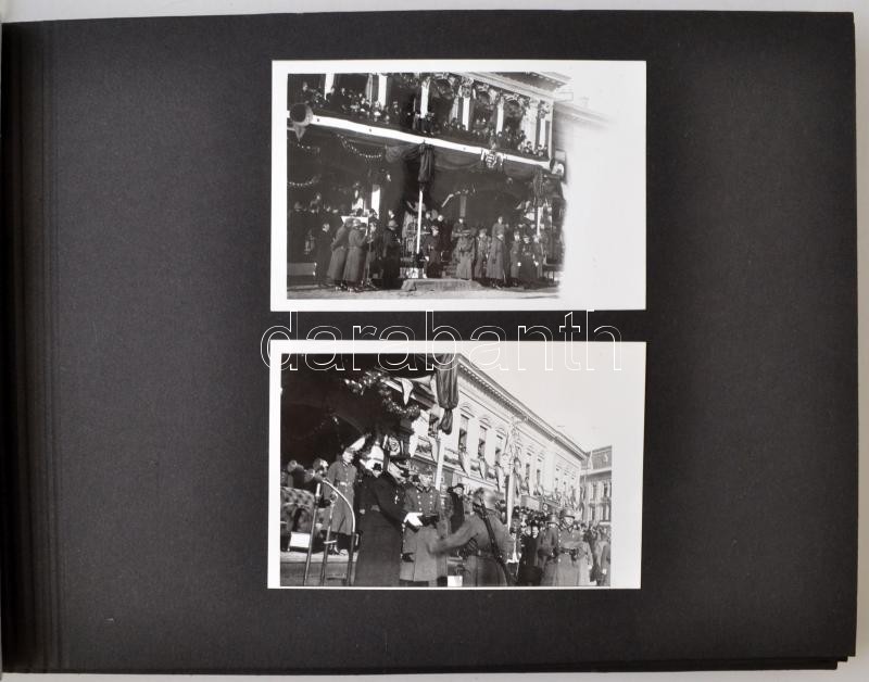 cca 1938 Vegyes katonai fotóalbum, köztük sok Horhy Miklós kormányzót ábrázoló, bevonulás a felvidékre(?), stb. a fényképek egy része modern nagyítás, különböző méretben, cca 30db