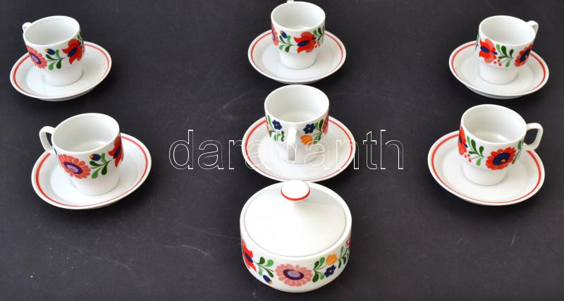 Beschreibung: Hollóházi mokkás csésze és alj (6db), bonbonier, matricás, jelzett, hibátlan, összesen: 7db