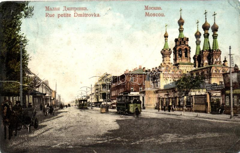 Moscow, Moscou; Rue petite Dmitrovka / street, trams (Rb) https://www.darabanth.com/de/267-Fernauktion/267.0/Ansichtskarten/RuC39Fland~300055/Moscow-Moscou-Rue-petite-Dmitrovka-street-trams-Rb~II1341794