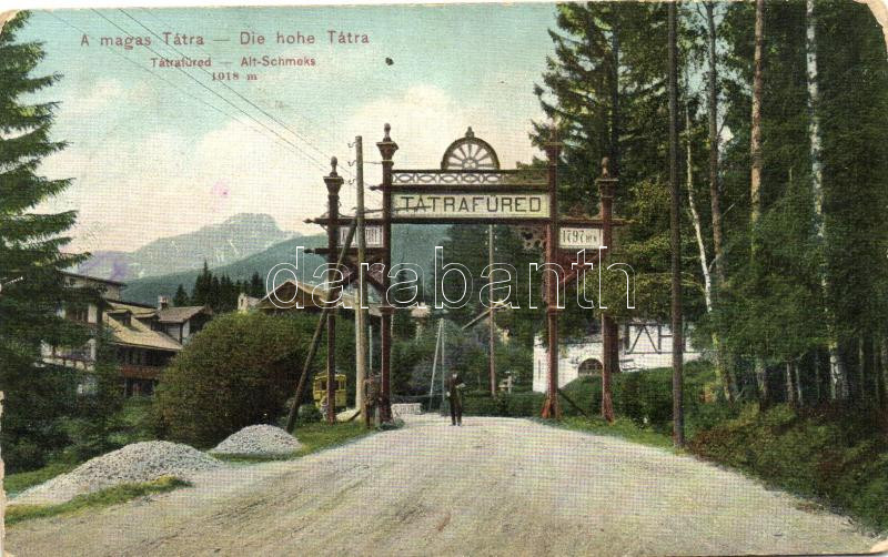 Tátrafüred, Stary Smokovec; kapu, villamos / entrance, tram (EK) https://www.darabanth.com/de/267-Fernauktion/267.0/Ansichtskarten/Slowakei~300008/Tatrafured-Stary-Smokovec-kapu-villamos-entrance-tram-EK~II1344048
