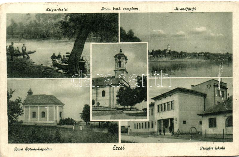 Ercsi, Polgári iskola, Báró Eötvös kápolna, Szigetrészlet, Strandfürdő... https://www.darabanth.com/de/267-Fernauktion/267.0/Ansichtskarten/Ungarn~300005/Ercsi-Polgari-iskola-Baro-Eotvos-kapolna-Szigetreszlet-Strandfurdo-Romai-Katolikus-te~II1343710