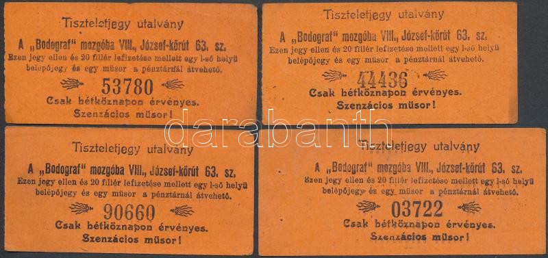 cca 1940 Tiszteletjegy utalvány a "Bodograf" mozgóba VIII., 4db, 4,5x9... https://www.darabanth.com/de/268-Fernauktion/268.0/Andere-Sammelgebiete/Dokument~30/cca-1940-Tiszteletjegy-utalvany-a-Bodograf-mozgoba-VIII-4db-4-5x9cm~II1345491