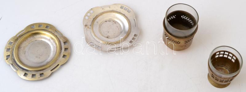 Beschreibung: Fém és üveg tétel, 4db-os az egyik csészealj Argentor jelzéssel, m:8cm, d:12cm