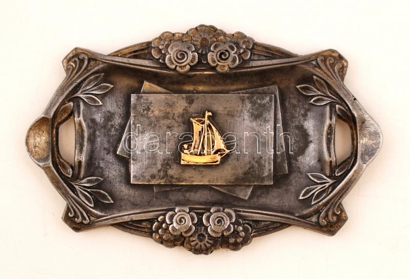 Beschreibung: Francia vitorlással és virágmotívumokkal díszített régi ón tálka, sorszámozott, jelzett, jó állapotban, 10x7 cm