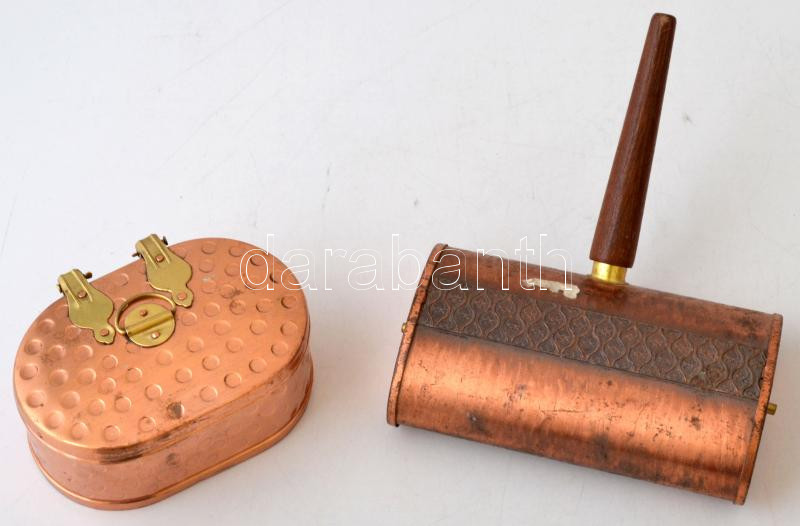 Beschreibung: Régi, réz tárgyak, asztali kefe (15x18cm), doboz (12x7x5cm )
