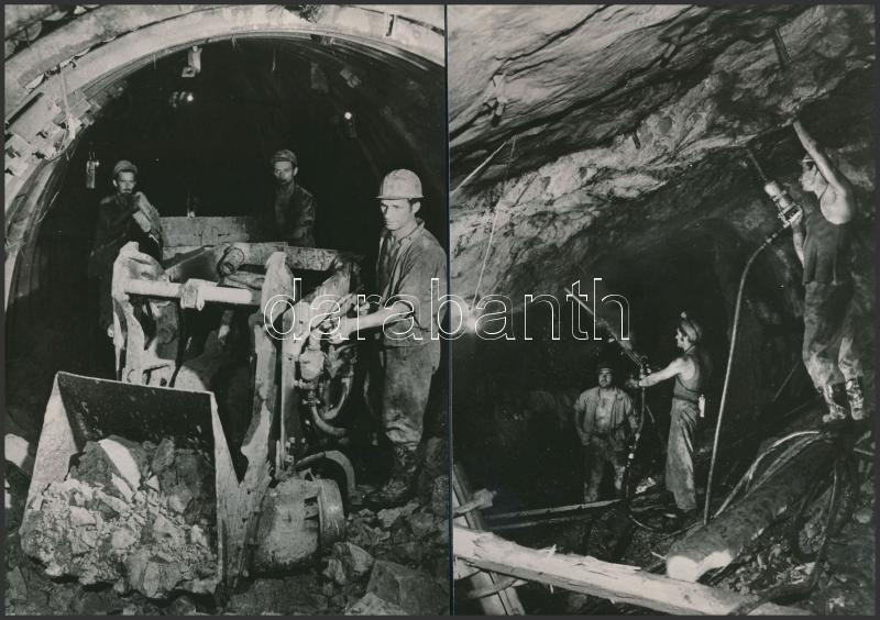 Beschreibung: cca 1972 Pécs, Mecseki Ércbányászati Vállalat, az ország legmélyebb bánya üzemében, a Petőc-aknában készült 2 db vintage fotó, 16x11 cm