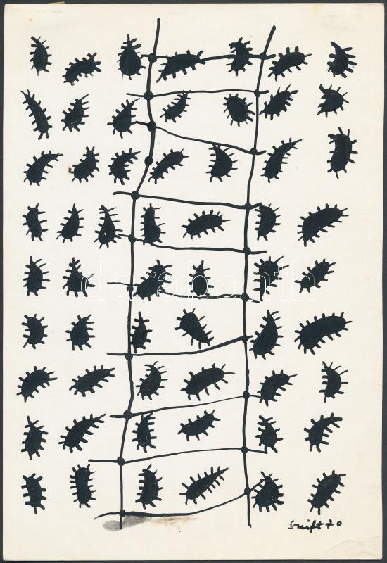 Szeift Béla (1944-2012): Lények. Tus, papír, jelzett, foltos, 20×13 cm https://www.darabanth.com/de/268-Fernauktion/268.0/Andere-Sammelgebiete/Gemalde-und-Grafiken~1/Szeift-Bela-1944-2012-Lenyek-Tus-papir-jelzett-foltos-20C39713-cm~II1346182