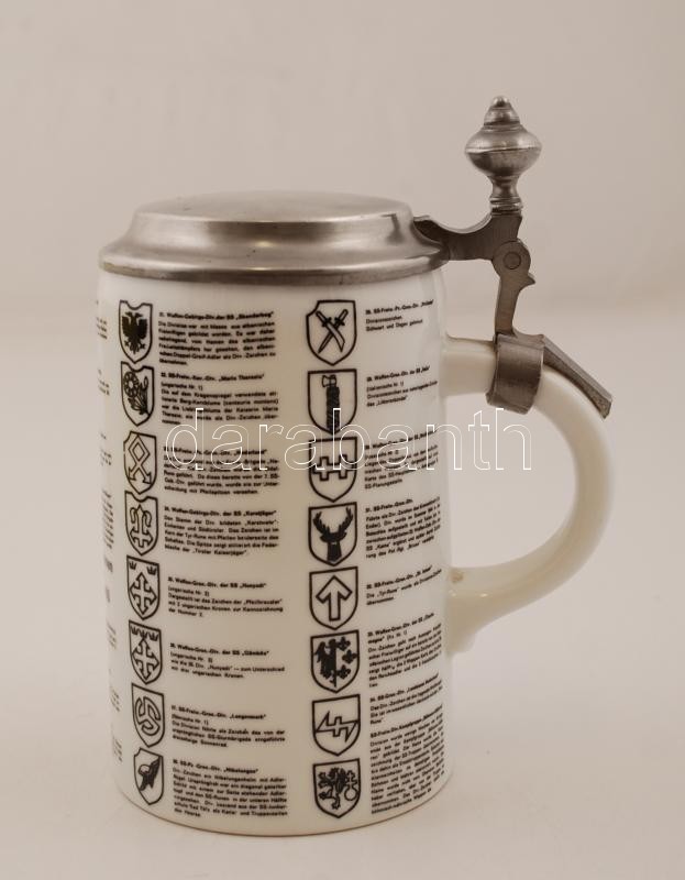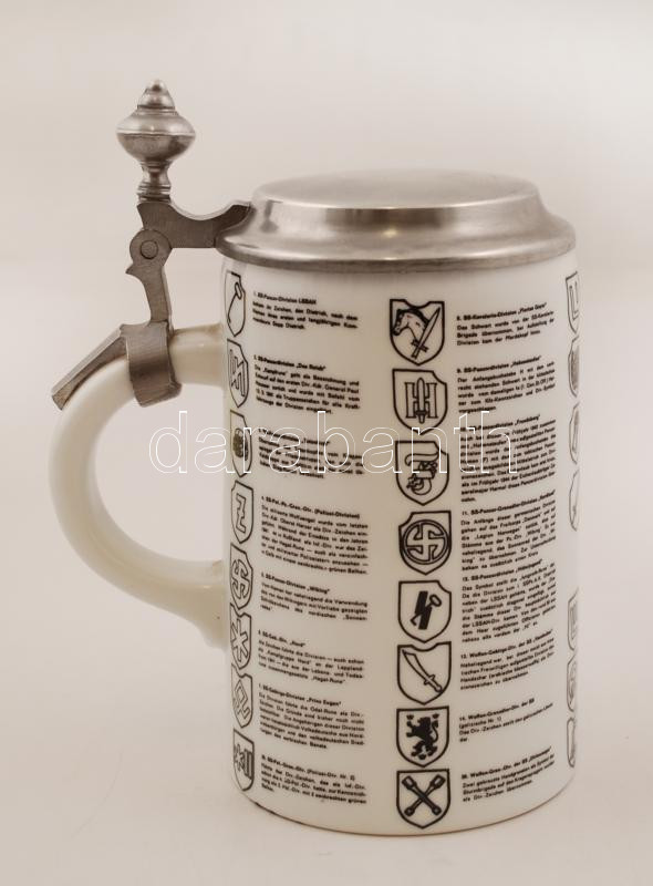 Fém fedeles söröskorsó az SS-hadosztályok felsorolásával és jelvényeik... https://www.darabanth.com/de/268-Fernauktion/268.0/Andere-Sammelgebiete/Militaria~6/Fem-fedeles-soroskorso-az-SS-hadosztalyok-felsorolasaval-es-jelvenyeikkel-matricas-jelzC3~II1350147