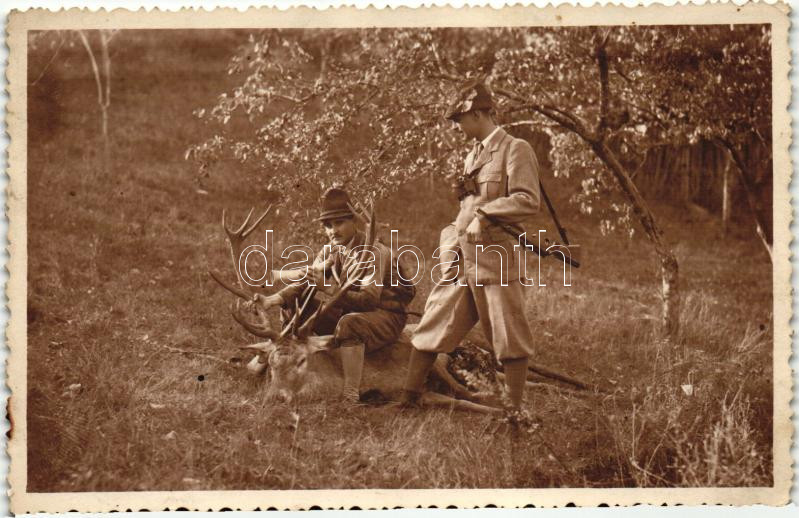 Az első elejtett szarvasbika; magyar vadászok; Fotó Kovács Imre, Gyöng... https://www.darabanth.com/de/268-Fernauktion/268.0/Ansichtskarten/Jagd~200099/Az-elso-elejtett-szarvasbika-magyar-vadaszok-Foto-Kovacs-Imre-Gyongyos-hatoldalon-vadasz~II1349456