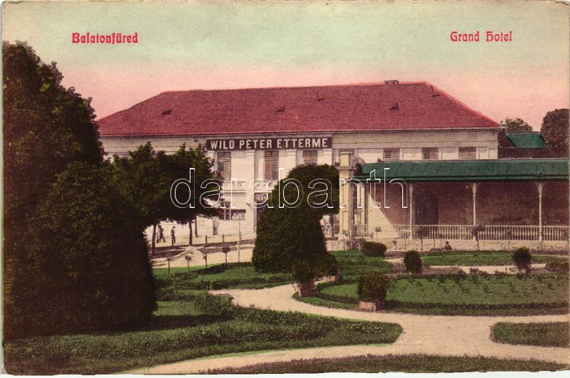 Balatonfüred, Grand Hotel, Wild Péter Étterme https://www.darabanth.com/de/268-Fernauktion/268.0/Ansichtskarten/Ungarn~200005/Balatonfured-Grand-Hotel-Wild-Peter-Etterme~II1344962