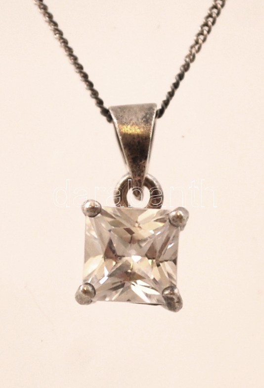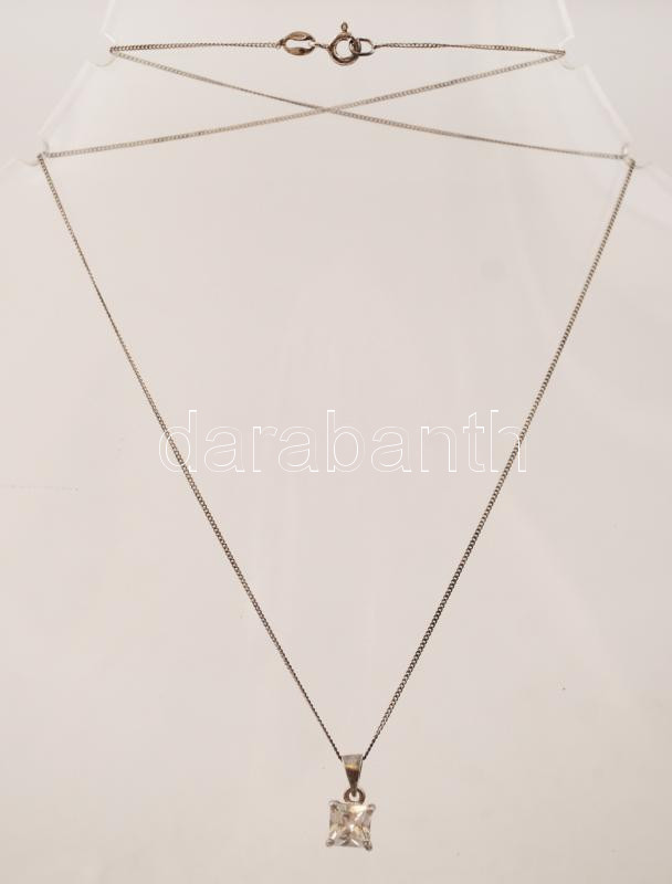 Ezüst nyaklánc köves medállal, Ag., bruttó:2,1gr., jelzett, 45cm/Silver necklace with stone pendant, Ag, gross:.. 2.1 g, signed, 45cm