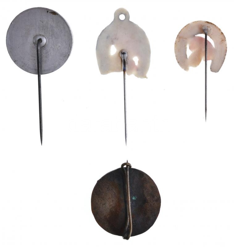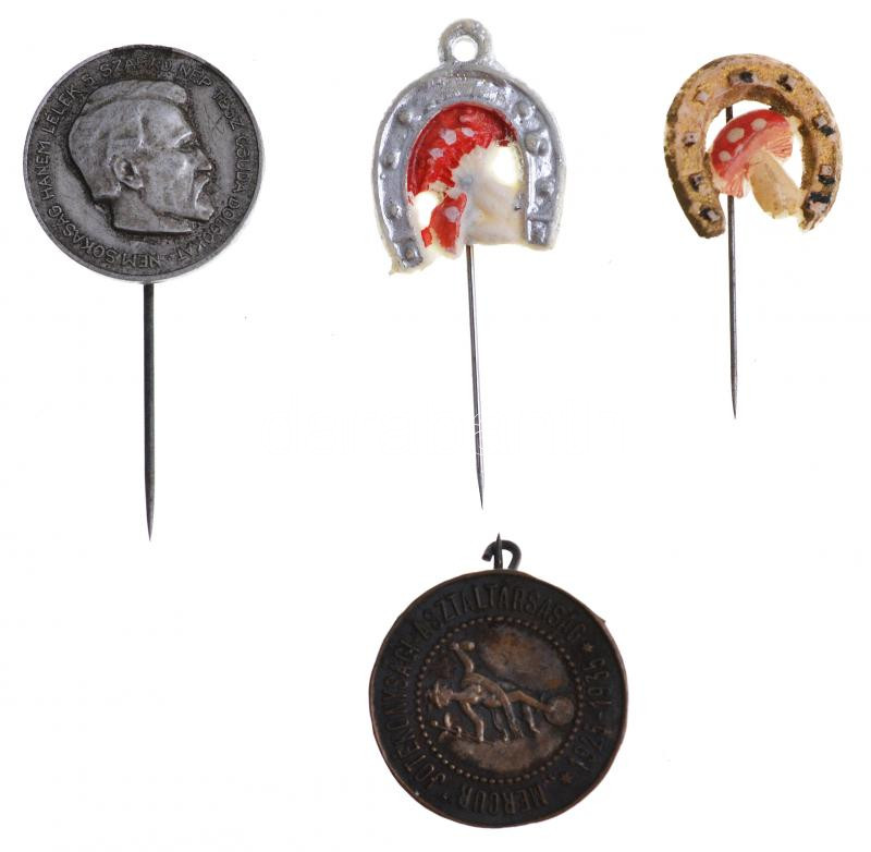 4db fém kitűző, közte "Nem sokaság, hanem lélek, s szabad nép tesz csuda dolgokat" Al kitűző + 1935. " 'Mercur' Jótékonysági asztaltársaság" ezüstözött Br jelvény (22mm) T:2,2-