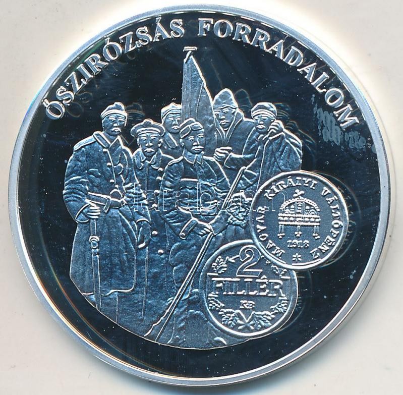 Beschreibung: DN "A magyar pénz krónikája - Őszirózsás forradalom" Ag emlékérem tanúsítvánnyal (20g/0.999/38,61mm) T:PP kis ujjlenyomat