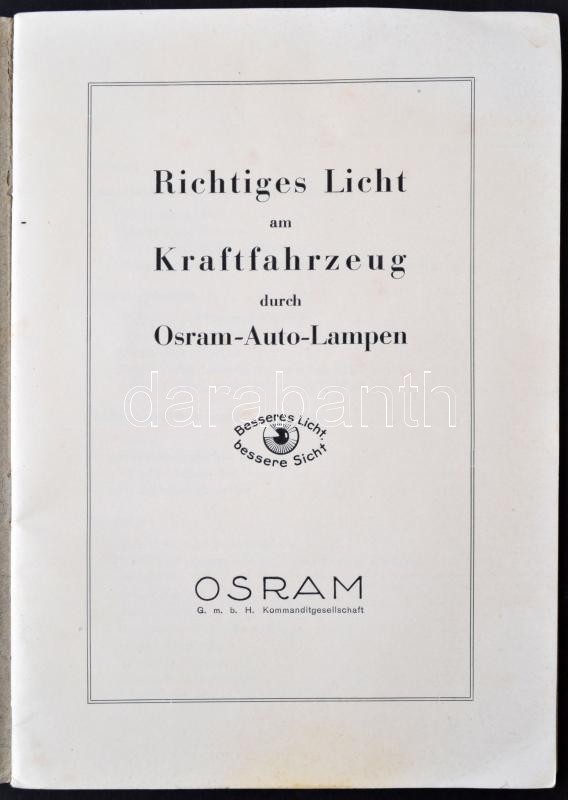 Ratgeber für richtiges Licht am Kraftfahrzeug durch Osram-Auto-Lampen. Német nyelvű. Tűzött papírborító, 43 p. Német nyelvű, Osram autólámpákról szóló brossúra. / Brochure of Osram autolamps, in german language. Paper.