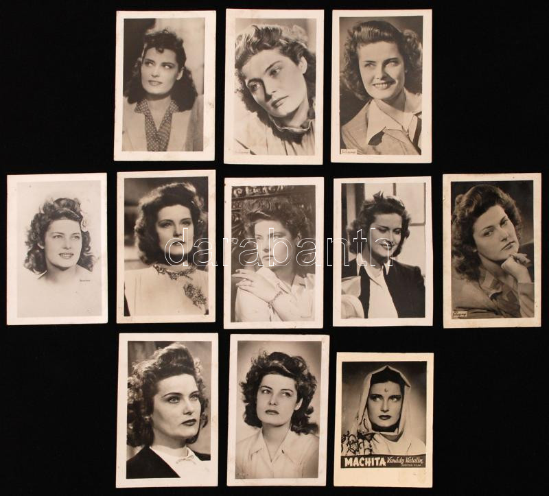Beschreibung: Karády Katalin (1910-1990) színésznő, énekesnő vegyes fotói, 10db, cca 7x4,5cm