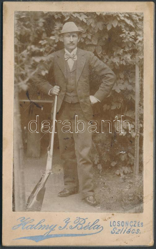 cca 1890 Vadász puskával, keményhátú fotó, Halmy I. Béla műterméből (L... https://www.darabanth.com/de/269-Fernauktion/269.0/Andere-Sammelgebiete/Foto~22/cca-1890-Vadasz-puskaval-kemenyhatu-foto-Halmy-I-Bela-mutermebol-Losonc--Szliacs-1~II1357998