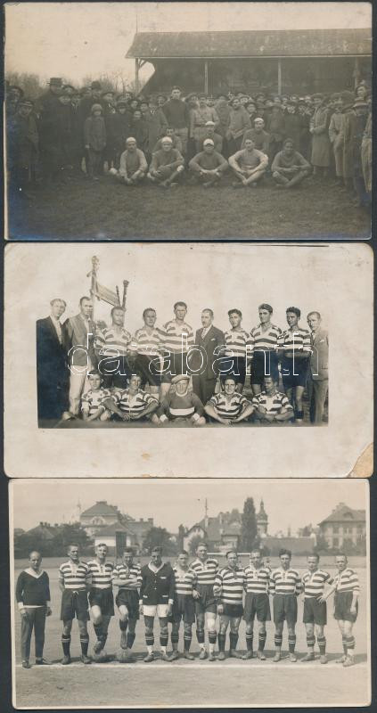 Beschreibung: cca 1920-1930 Futballcsapatok, 3 db fotólap, egyik sarkán sérüléssel, 9x14 cm