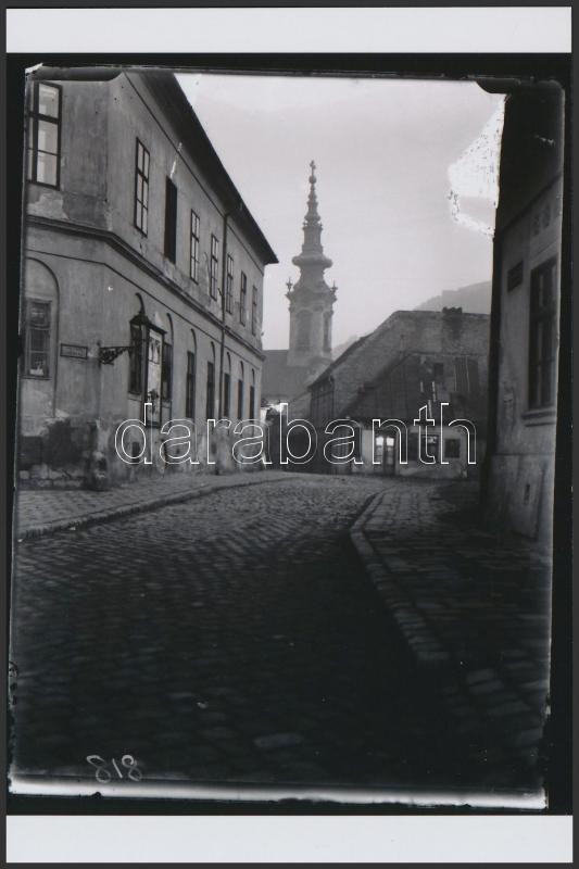 Beschreibung: cca 1920 Budapest, Szarvas tér, szemben egy kisvendéglő, Kerny István (1879-1963) hagyatékában őrzött negatív modern nagyítása, 15x10 cm