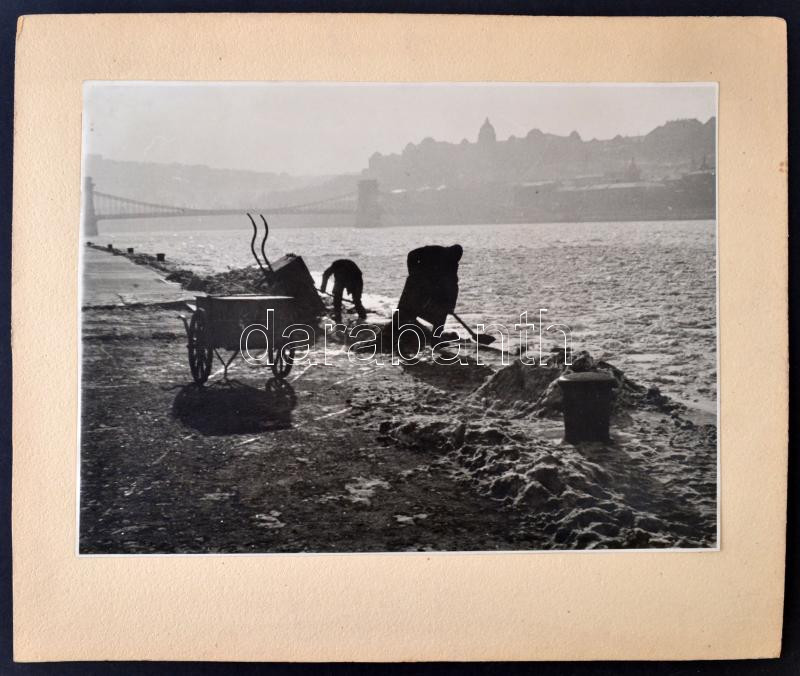 Beschreibung: cca 1930-40 Munkálatok a Duna parton, fotó kartonra kasírozva, 21x29cm