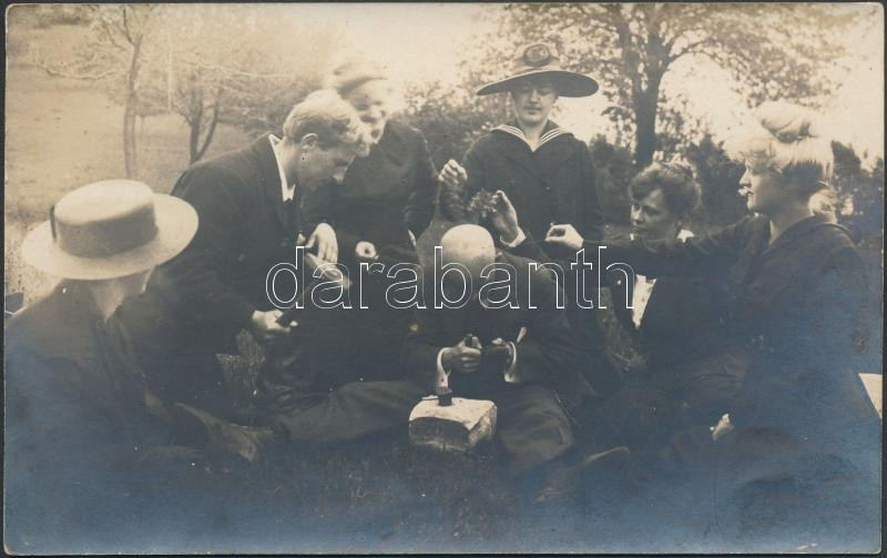 cca 1930 Cipőjavítás egy kiránduláson, fotólap, 8x13cm https://www.darabanth.com/de/269-Fernauktion/269.0/Andere-Sammelgebiete/Foto~22/cca-1930-Cipojavitas-egy-kirandulason-fotolap-8x13cm~II1357695