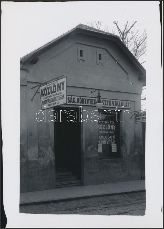 cca 1935 Kecskeméti Közlöny kiadóhivatala, könyvtár és könyvkereskedés, Lőcsei Árpád kecskeméti vándorfényképész hagyatékában őrzött negatív modern nagyítása, 18x13 cm