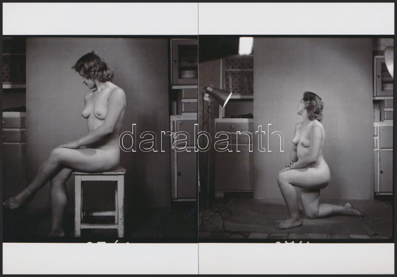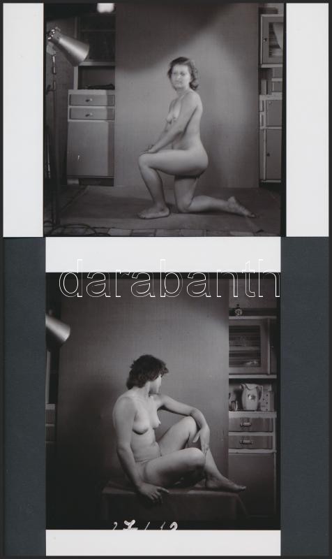 cca 1950 Háziasszony a konyhaszekrény előtt, finoman erotikus fényképek, 8 db korabeli negatívról készült modern nagyítás, 18x13 cm / 8 erotic photos, 18x13 cm