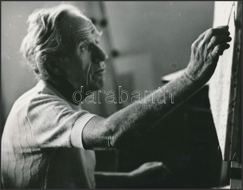 cca 1973 Czóbel Béla (1883-1976) Kossuth-díjas festőművész a műtermében, Adam Eisenhöffel német fotóművész pecséttel jelzett vintage alkotása, 17x22 cm