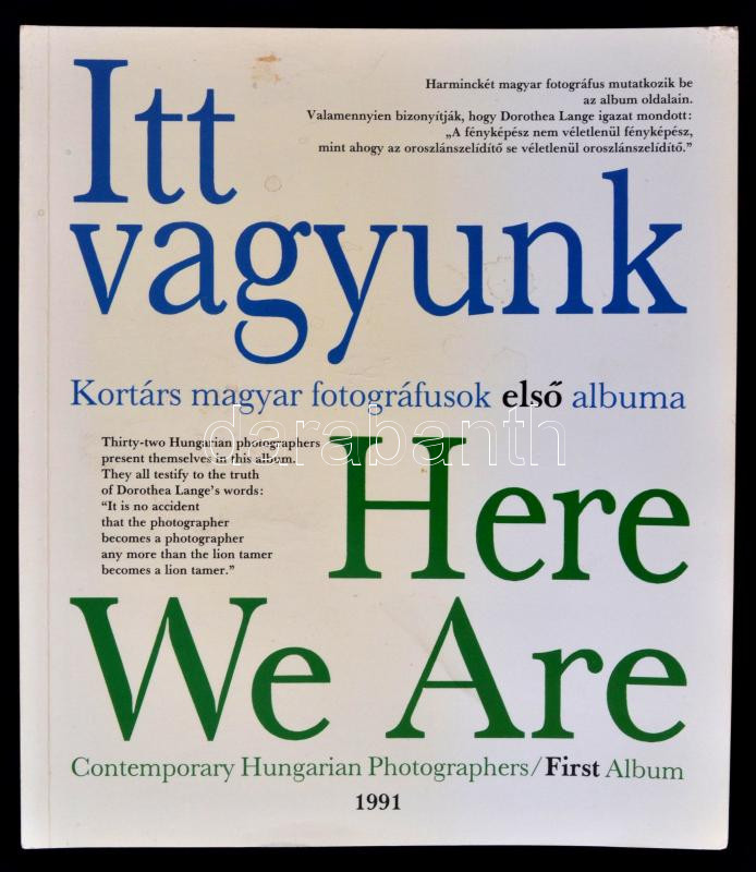 Itt vagyunk. Here We Are. Kortárs magyar fotográfusok első albuma. Bp., 1991, Magyar Fotóművészek Szövetsége. Papírkötésben, jó állapotban.