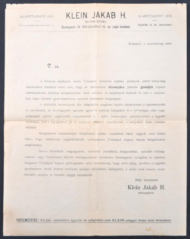 cca 1910 Klein Jakab bútorgyára tájékoztató levele, 2 p. https://www.darabanth.com/de/269-Fernauktion/269.0/Andere-Sammelgebiete/Werbungen~24/cca-1910-Klein-Jakab-butorgyara-tajekoztato-levele-2-p~II1353151