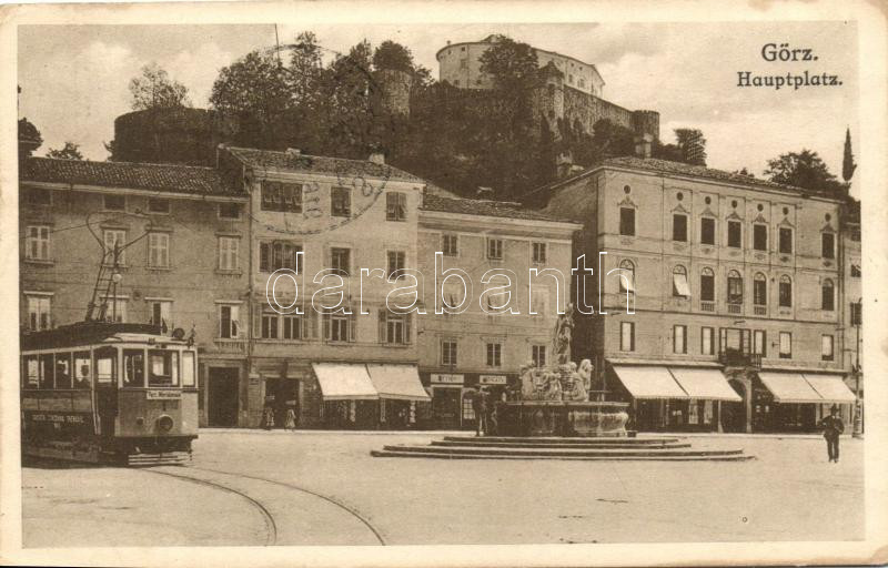 Gorizia, Görz; Hauptplatz / main square, tram (EK) https://www.darabanth.com/de/269-Fernauktion/269.0/Ansichtskarten/Italien~300051/Gorizia-Gorz-Hauptplatz-main-square-tram-EK~II1358133