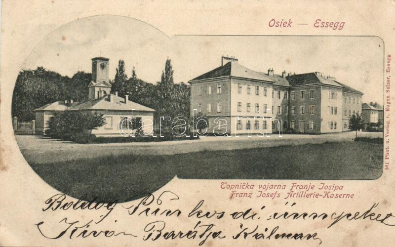 Eszék, Esseg, Osijek; Ferenc József tüzérlaktanya / artillery barracks... https://www.darabanth.com/de/269-Fernauktion/269.0/Ansichtskarten/Kroatien~300052/Eszek-Esseg-Osijek-Ferenc-Jozsef-tuzerlaktanya-artillery-barracks-EK~II1356099
