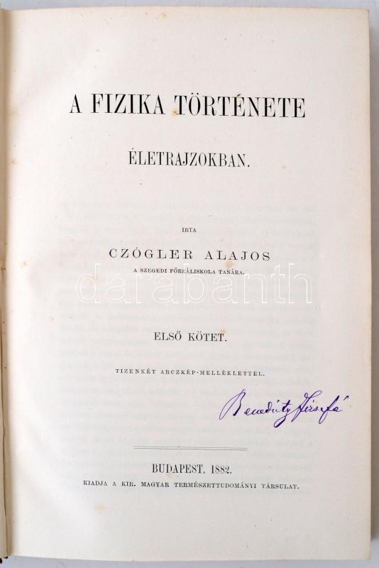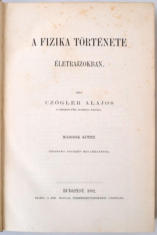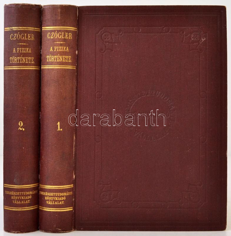 Czógler Alajos: A fizika története életrajzokban I-II. Budapest, 1882, Királyi Magyar Természettudományi Társulat. Kiadói egészvászon kötésben, 590+592 p. A gerince néhol kopottas, de alapvetően jó állapotban.