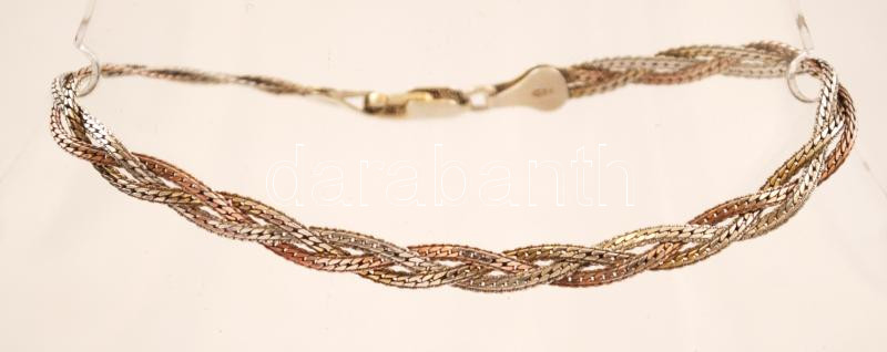 Ezüst 3 színű, fonott karlánc, Ag., nettó:4,5gr., jelzett, 19,5cm / Silver bracelet, Ag, net.4,5gr, marked, 19,5cm