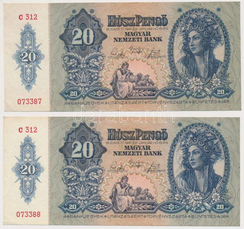 Beschreibung: 1941. 20P (2x) sorszámkövetők T:III nyomdai papírránc, szennyeződés