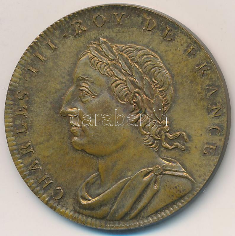 Franciaország ~1900. "III. Károly" peremén jelzett Br emlékérem "Francia Királyok sorozat" (14,34g/32mm) T:2