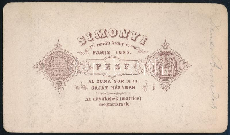 Beschreibung: cca 1859 Dentó Benedek feliratozott, vizitkártya méretű fényképe, Simonyi pesti műterméből, 10,5x6 cm