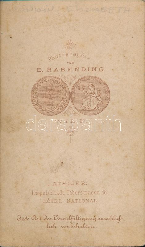 cca 1880 Erzsébet királynő Sisi vizitkártya méretű fotója. / Original ... https://www.darabanth.com/de/27-Gross-Auktion/27.1/Andere-Sammelgebiete/Foto~10914/cca-1880-Erzsebet-kiralyno-Sisi-vizitkartya-meretu-fotoja-Original-photo-of-Queen-Sisi-9x~II1585860