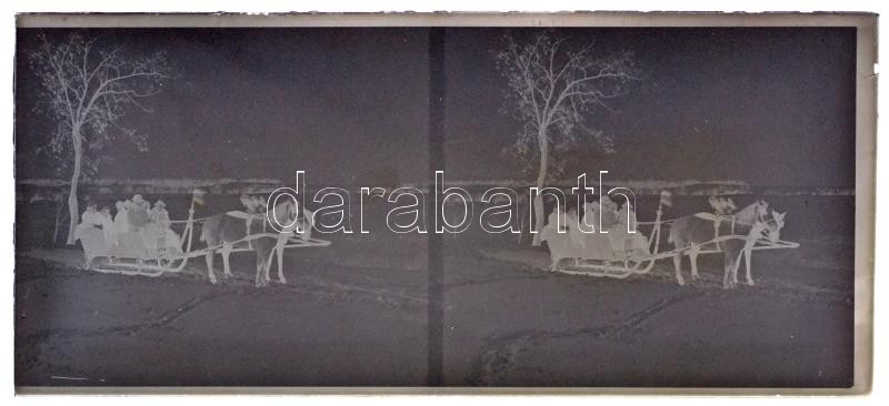Beschreibung: cca 1926 Lovak által vontatott szán, 1 db sztereo üveglemez negatív képpár, 6x13 cm