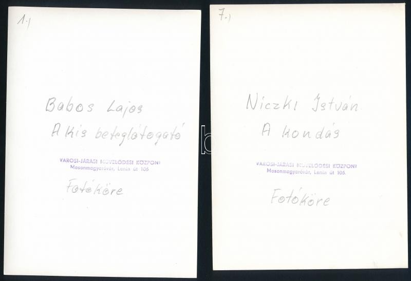 cca 1977 Kortárs fotóművészeti alkotások, 13 db feliratozott vintage f... https://www.darabanth.com/de/27-Gross-Auktion/27.1/Andere-Sammelgebiete/Foto~10914/cca-1977-Kortars-fotomuveszeti-alkotasok-13-db-feliratozott-vintage-foto-kis-elteresekkel-~II1571724