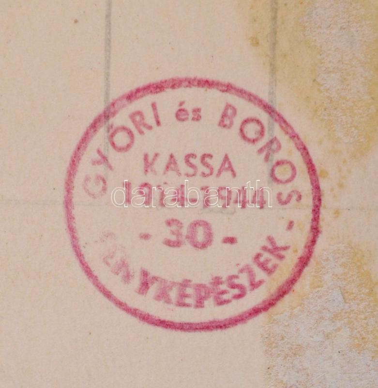 1944 Azonosítatlan tábornok portréja, kitüntetésekkel (vitézi jelvény, német vaskereszt, magyar érdemkereszt III. osztálya, magyar érdemrend tisztikeresztje hadidíszítménnyel és kardokkal, magyar érdemrend lovagkeresztje), fotó, Győri és Boros fényképészek műterméből (Kassa), hátulján pecséttel jelzett, 13×9 cm / 1944 Portriat of an unidentified Hungarian general, photograph, 13×9 cm