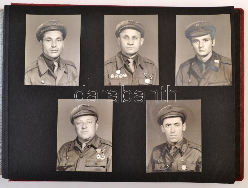 cca 1970-1980 Dobi István munkásőr század emlékalbuma Dobi Istvánnének, 1+50 fotó, műbőr mappában, feliratozva, 8x6 cm és 13x18 cm közötti méretben./ cca 1970-1980 Memory album of István Dobi Workers' Militia company, for his wife, 1+50 pc photos, in Leatherette folder, with writings, between 8x16 cm and 13x18 cm.