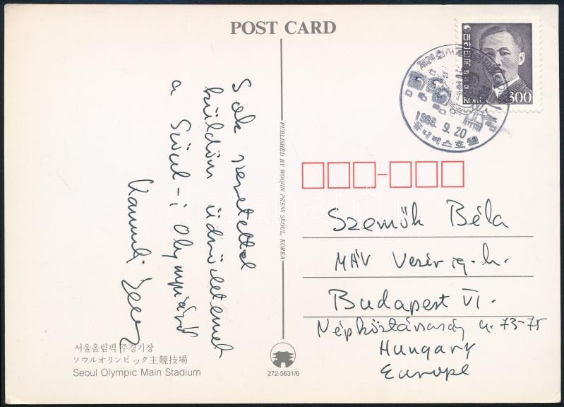 1988 Kamuii Jenő olimpiai bajnok vívó aláírt képeslap a Szöuli Olimpiá... https://www.darabanth.com/de/27-Gross-Auktion/27.1/Andere-Sammelgebiete/Signatur~10900/1988-Kamuii-Jeno-olimpiai-bajnok-vivo-alairt-kepeslap-a-Szouli-Olimpiarol-Hungarian-olymp~II1584925