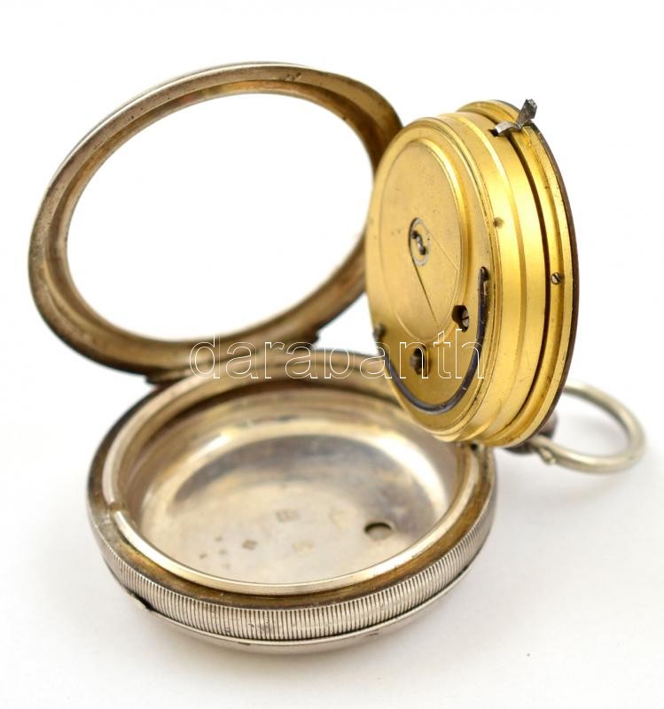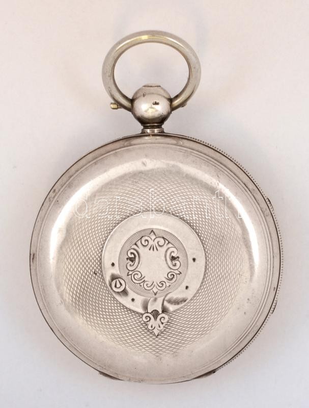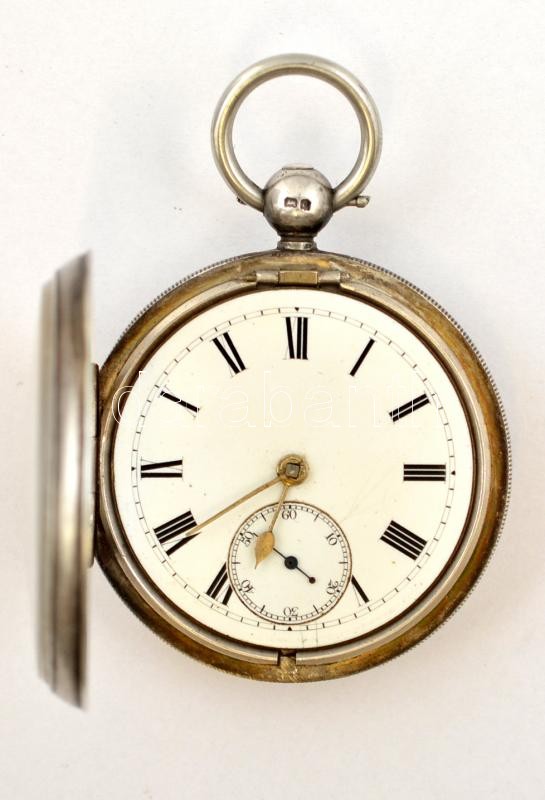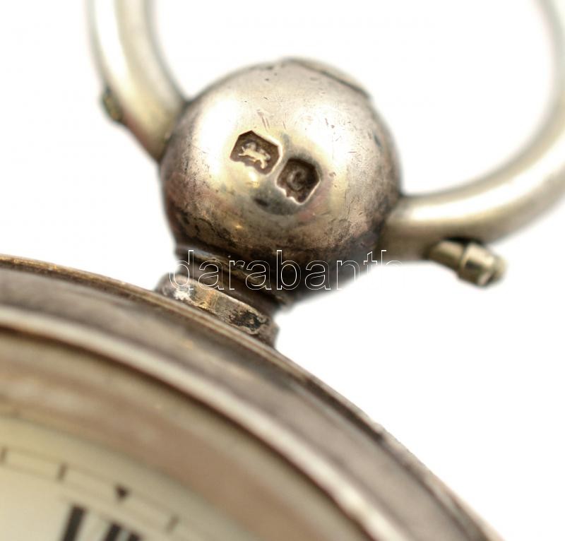cca 1880 Miller & Stewart Hereford jelzett zsebóra. Korai ankerjáratos, kulcsos, háromfelé nyitható, hibátlan számlappal, szépen járó, működő szerkezettel,. kulccsal / cca 1880 Signed silver pocket watch. Early ancre mechanics, with winding key. Works well. d:5 cm