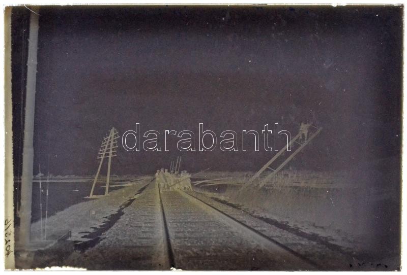 1931. február 14. Gárdony feliratú, vintage üveglemez negatív, vasút menti távíró- és telefonvonalak javításáról, Kerny István (1879-1963) hagyatékából, 10x15 cm