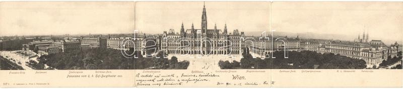 Beschreibung: Vienna, Wien; Panorama vom K.k. Hof-Burgtheater. Dreischichtige Panoramakarte / Three-tiled panoramacard