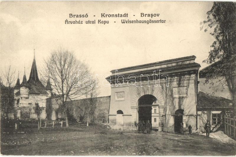 Brassó, Kronstadt, Brasov; Árvaház utcai kapu / Weisenhausgässertor / ... https://www.darabanth.com/de/27-Gross-Auktion/27.1/Ansichtskarten/Siebenburgen~10795/Brasso-Kronstadt-Brasov-Arvahaz-utcai-kapu-Weisenhausgassertor-Orphanage-street-gate~II1588931