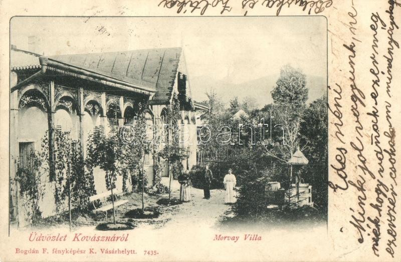 Kovászna, Covasna; Morvay villa. Bogdán F. fényképész / villa (EK) https://www.darabanth.com/de/27-Gross-Auktion/27.1/Ansichtskarten/Siebenburgen~10795/Kovaszna-Covasna-Morvay-villa-Bogdan-F-fenykepesz-villa-EK~II1589008